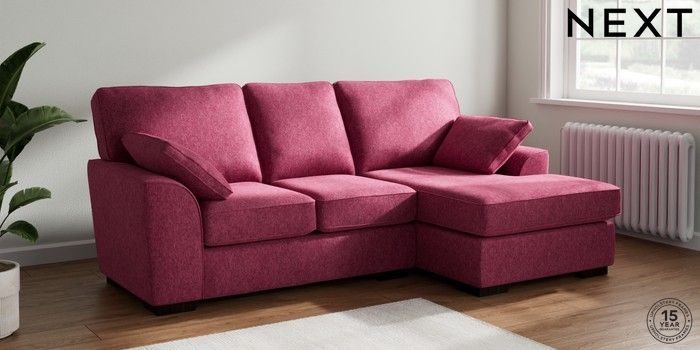 7.2.10 Stamford Small Sofa Chaise - Right Hand Cotswold Chenille Dark Raspberry Pink Large Square Angle - Dark | Made Click here to use our website with more accessibility support, for example screen readers