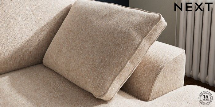 7.2.10 Stamford Small Sofa Chaise - Right Hand Cotswold Chenille Light Natural Large Square Angle - Dark | Made Click here to use our website with more accessibility support, for example screen readers