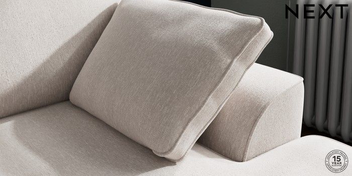 7.2.10 Stamford Small Sofa Chaise - Right Hand Cotswold Chenille Oyster Large Square Angle - Chrome Metal | Made Click here to use our website with more accessibility support, for example screen readers