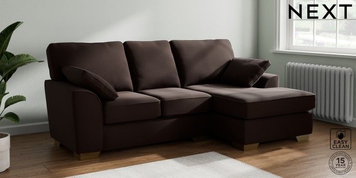 7.2.10 Stamford Small Sofa Chaise - Right Hand Fine Chenille Easy Clean Chocolate Brown Large Square Angle - Brushed Brass | Made Click here to use our website with more accessibility support, for example screen readers