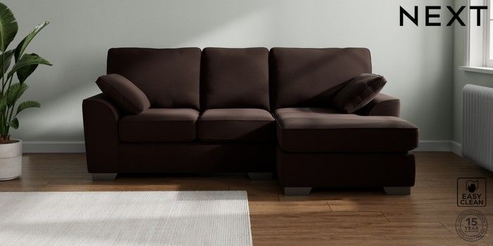 7.2.10 Stamford Small Sofa Chaise - Right Hand Fine Chenille Easy Clean Chocolate Brown Large Square Angle - Gunmetal | Made Click here to use our website with more accessibility support, for example screen readers