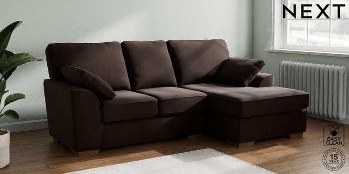 7.2.10 Stamford Small Sofa Chaise - Right Hand Fine Chenille Easy Clean Chocolate Brown Large Square Angle - Mid | Made Click here to use our website with more accessibility support, for example screen readers