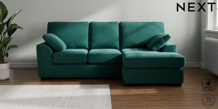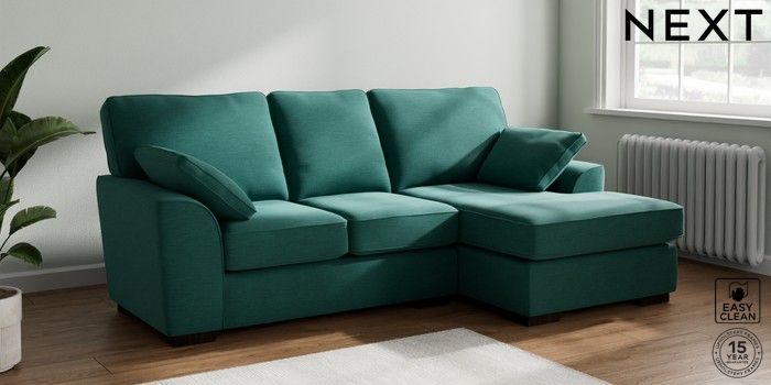 7.2.10 Stamford Small Sofa Chaise - Right Hand Fine Chenille Easy Clean Dark Juniper Green Large Square Angle - Dark | Made Click here to use our website with more accessibility support, for example screen readers