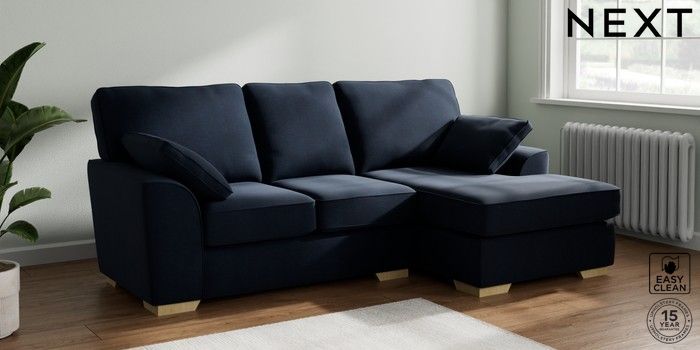 7.2.10 Stamford Small Sofa Chaise - Right Hand Fine Chenille Easy Clean Dark Navy Blue Large Square Angle - Light | Made Click here to use our website with more accessibility support, for example screen readers