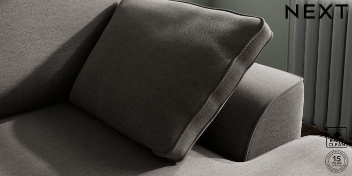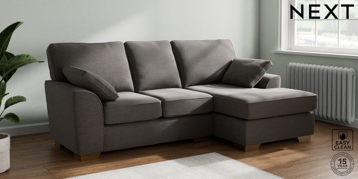 7.2.10 Stamford Small Sofa Chaise - Right Hand Fine Chenille Easy Clean Dark Smoke Grey Large Square Angle - Brushed Brass | Made Click here to use our website with more accessibility support, for example screen readers