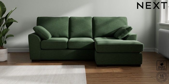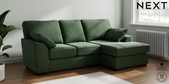 7.2.10 Stamford Small Sofa Chaise - Right Hand Fine Chenille Easy Clean Mid Khaki Green Large Square Angle - Dark | Made Click here to use our website with more accessibility support, for example screen readers