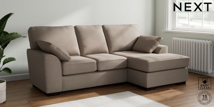 7.2.10 Stamford Small Sofa Chaise - Right Hand Fine Chenille Easy Clean Mid Taupe Brown Large Square Angle - Dark | Made Click here to use our website with more accessibility support, for example screen readers