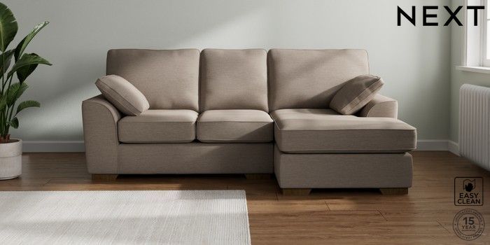 7.2.10 Stamford Small Sofa Chaise - Right Hand Fine Chenille Easy Clean Mid Taupe Brown Large Square Angle - Mid | Made Click here to use our website with more accessibility support, for example screen readers