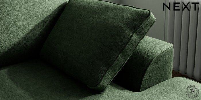 7.2.10 Stamford Small Sofa Chaise - Right Hand Luxe Chenille Dark Green Large Square Angle - Chrome Metal | Made Click here to use our website with more accessibility support, for example screen readers