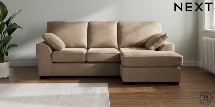 7.2.10 Stamford Small Sofa Chaise - Right Hand Luxe Chenille Mid Camel Beige Large Square Angle - Dark | Made Click here to use our website with more accessibility support, for example screen readers
