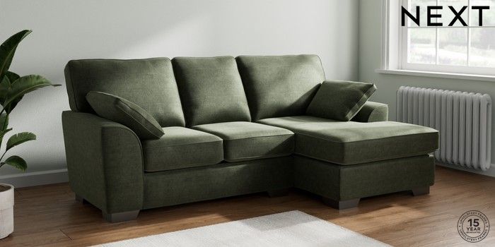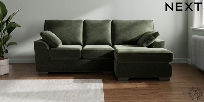 7.2.10 Stamford Small Sofa Chaise - Right Hand Luxe Chenille Mid Green Large Square Angle - Gunmetal | Made Click here to use our website with more accessibility support, for example screen readers