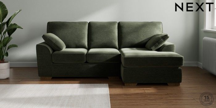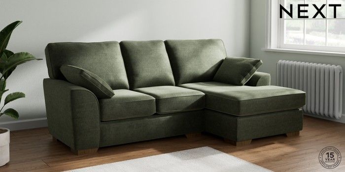 7.2.10 Stamford Small Sofa Chaise - Right Hand Luxe Chenille Mid Green Large Square Angle - Mid | Made Click here to use our website with more accessibility support, for example screen readers
