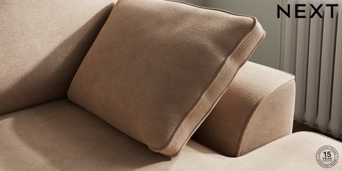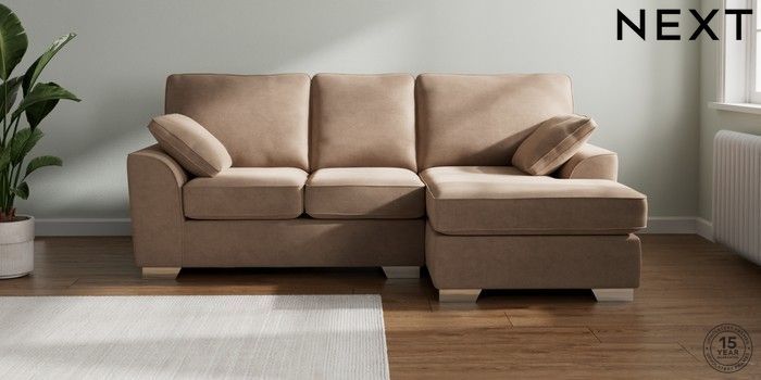 7.2.10 Stamford Small Sofa Chaise - Right Hand Luxe Chenille Mid Natural Large Square Angle - Chrome Metal | Made Click here to use our website with more accessibility support, for example screen readers
