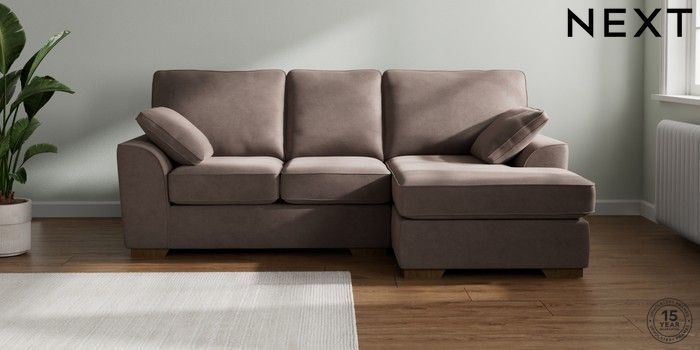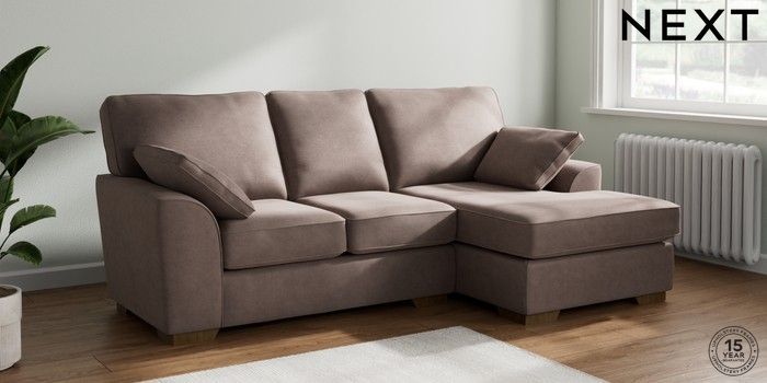 7.2.10 Stamford Small Sofa Chaise - Right Hand Luxe Chenille Mink Brown Large Square Angle - Mid | Made Click here to use our website with more accessibility support, for example screen readers