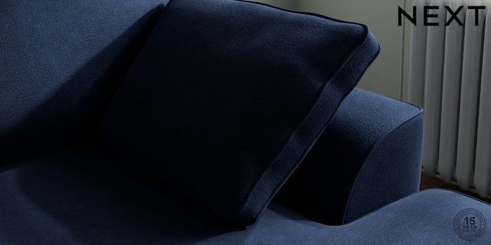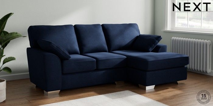 7.2.10 Stamford Small Sofa Chaise - Right Hand Luxe Chenille Navy Blue Large Square Angle - Chrome Metal | Made Click here to use our website with more accessibility support, for example screen readers