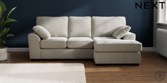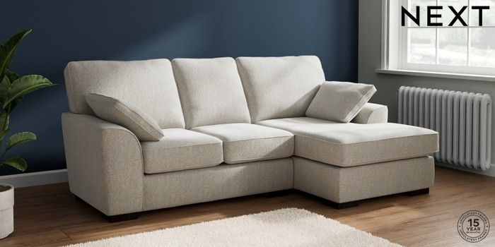 7.2.10 Stamford Small Sofa Chaise - Right Hand Multi Weave Light Blue Large Square Angle - Dark | Made Click here to use our website with more accessibility support, for example screen readers
