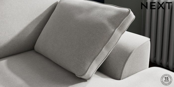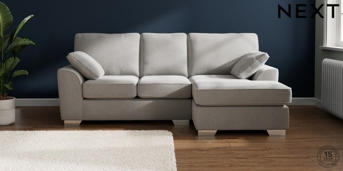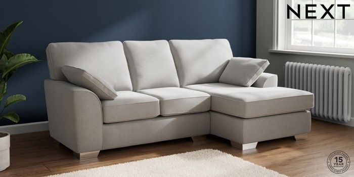 7.2.10 Stamford Small Sofa Chaise - Right Hand Natural Mix Light Grey Large Square Angle - Chrome Metal | Made Click here to use our website with more accessibility support, for example screen readers