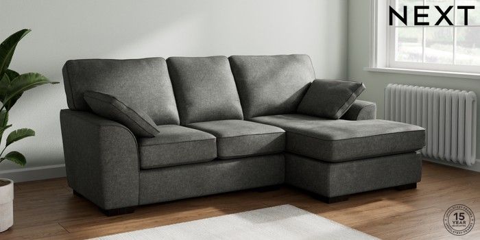 7.2.10 Stamford Small Sofa Chaise - Right Hand Plush Chenille Dark Grey Large Square Angle - Dark | Made Click here to use our website with more accessibility support, for example screen readers