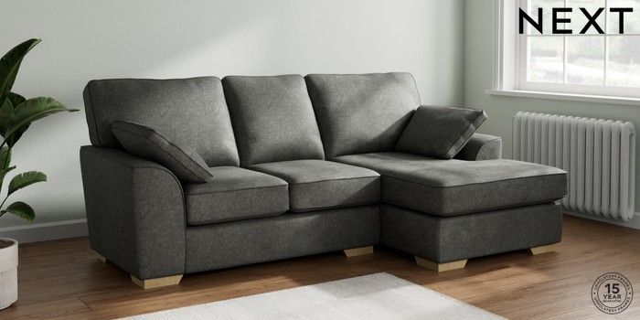 7.2.10 Stamford Small Sofa Chaise - Right Hand Plush Chenille Dark Grey Large Square Angle - Light | Made Click here to use our website with more accessibility support, for example screen readers