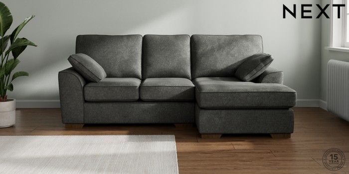 7.2.10 Stamford Small Sofa Chaise - Right Hand Plush Chenille Dark Grey Large Square Angle - Mid | Made Click here to use our website with more accessibility support, for example screen readers