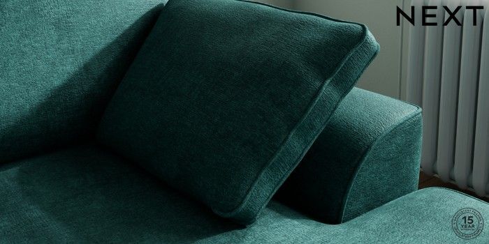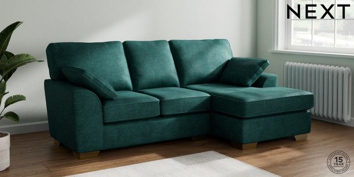7.2.10 Stamford Small Sofa Chaise - Right Hand Plush Chenille Dark Teal Green Large Square Angle - Brushed Brass | Made Click here to use our website with more accessibility support, for example screen readers