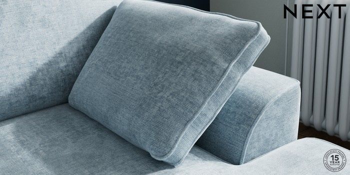 7.2.10 Stamford Small Sofa Chaise - Right Hand Plush Chenille Light Blue Large Square Angle - Mid | Made Click here to use our website with more accessibility support, for example screen readers
