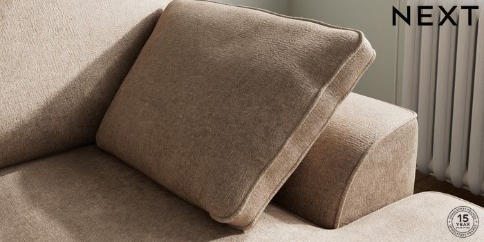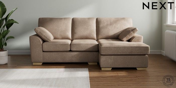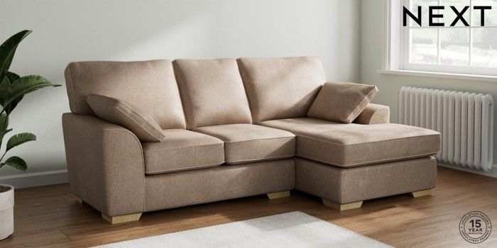 7.2.10 Stamford Small Sofa Chaise - Right Hand Plush Chenille Mid Natural Large Square Angle - Light | Made Click here to use our website with more accessibility support, for example screen readers