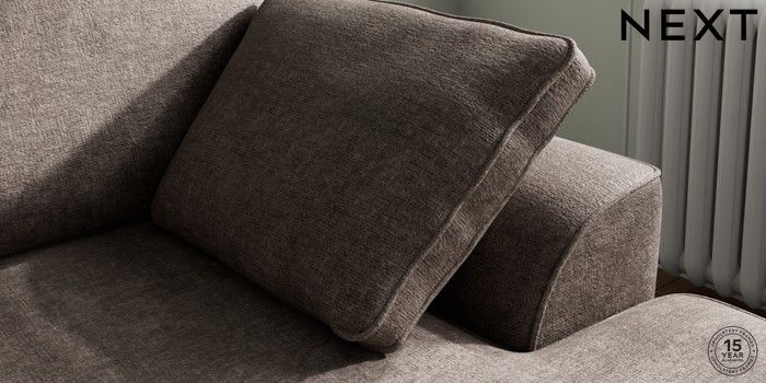 7.2.10 Stamford Small Sofa Chaise - Right Hand Plush Chenille Mink Brown Large Square Angle - Chrome Metal | Made Click here to use our website with more accessibility support, for example screen readers