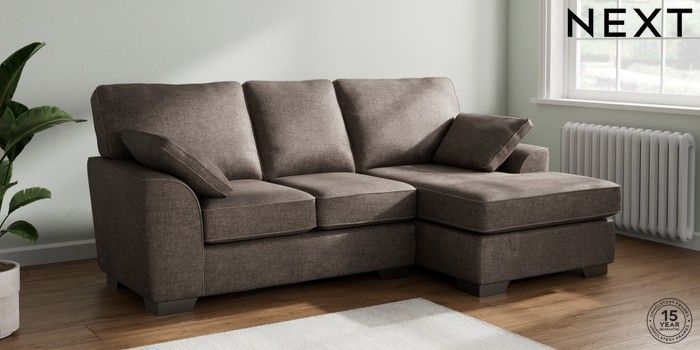 7.2.10 Stamford Small Sofa Chaise - Right Hand Plush Chenille Mink Brown Large Square Angle - Gunmetal | Made Click here to use our website with more accessibility support, for example screen readers