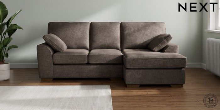 7.2.10 Stamford Small Sofa Chaise - Right Hand Plush Chenille Mink Brown Large Square Angle - Mid | Made Click here to use our website with more accessibility support, for example screen readers