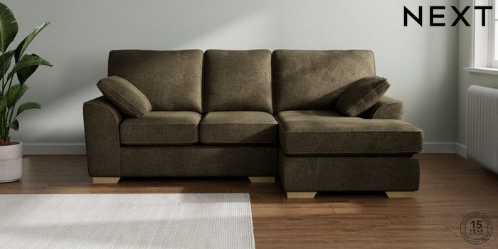 7.2.10 Stamford Small Sofa Chaise - Right Hand Plush Chenille Moss Green Large Square Angle - Light | Made Click here to use our website with more accessibility support, for example screen readers
