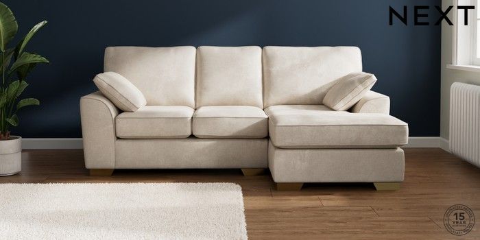 7.2.10 Stamford Small Sofa Chaise - Right Hand Plush Chenille Oyster Large Square Angle - Brushed Brass | Made Click here to use our website with more accessibility support, for example screen readers