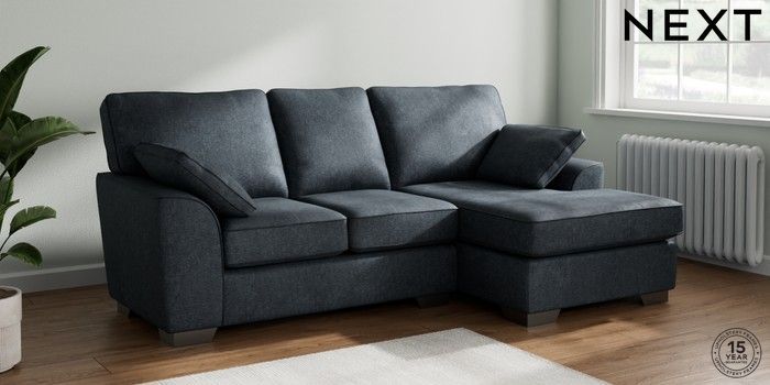 7.2.10 Stamford Small Sofa Chaise - Right Hand Plush Chenille Slate Blue Large Square Angle - Gunmetal | Made Click here to use our website with more accessibility support, for example screen readers
