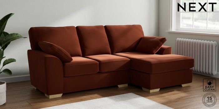 7.2.10 Stamford Small Sofa Chaise - Right Hand Plush Velvet Easy Clean Ginger Orange Large Square Angle - Light | Made Click here to use our website with more accessibility support, for example screen readers