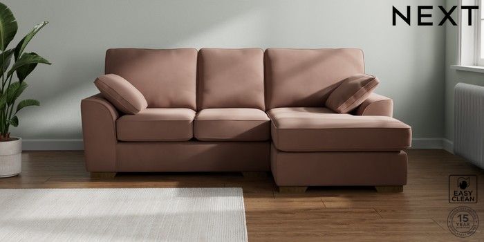 7.2.10 Stamford Small Sofa Chaise - Right Hand Plush Velvet Easy Clean Mid Natural Large Square Angle - Mid | Made Click here to use our website with more accessibility support, for example screen readers