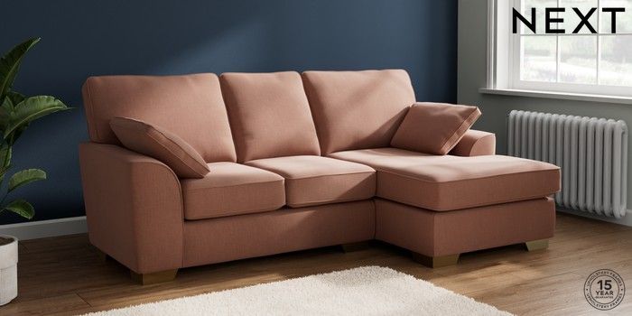7.2.10 Stamford Small Sofa Chaise - Right Hand Relaxed Linen Look Light Rust Brown Large Square Angle - Brushed Brass | Made Click here to use our website with more accessibility support, for example screen readers