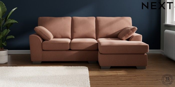 7.2.10 Stamford Small Sofa Chaise - Right Hand Relaxed Linen Look Light Rust Brown Large Square Angle - Gunmetal | Made Click here to use our website with more accessibility support, for example screen readers