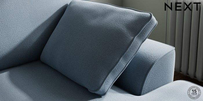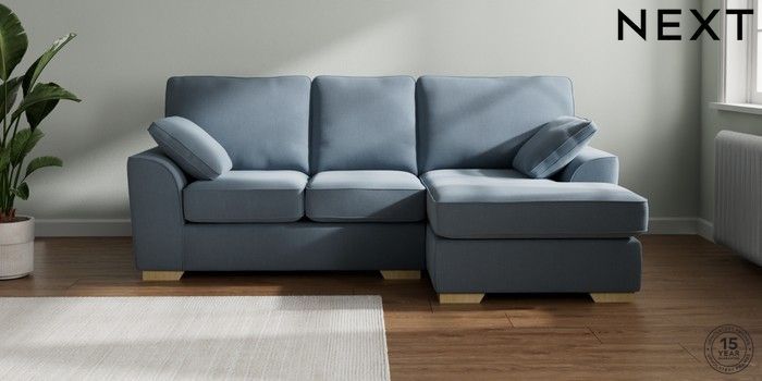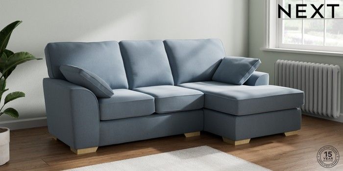 7.2.10 Stamford Small Sofa Chaise - Right Hand Relaxed Linen Look Mid Blue Large Square Angle - Light | Made Click here to use our website with more accessibility support, for example screen readers