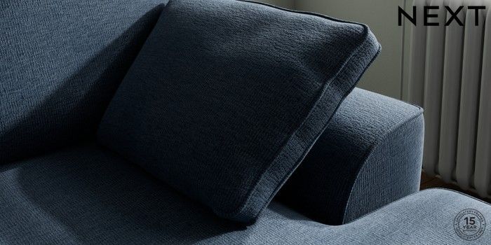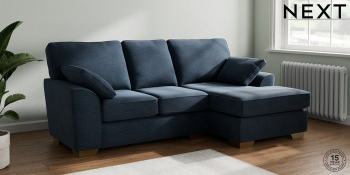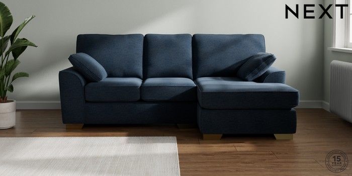 7.2.10 Stamford Small Sofa Chaise - Right Hand Ripple Chenille Dark Blue Large Square Angle - Brushed Brass | Made Click here to use our website with more accessibility support, for example screen readers