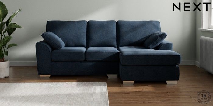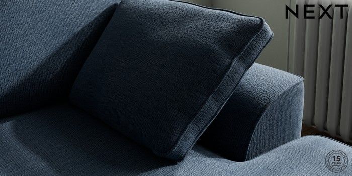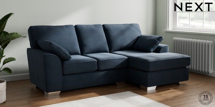 7.2.10 Stamford Small Sofa Chaise - Right Hand Ripple Chenille Dark Blue Large Square Angle - Chrome Metal | Made Click here to use our website with more accessibility support, for example screen readers