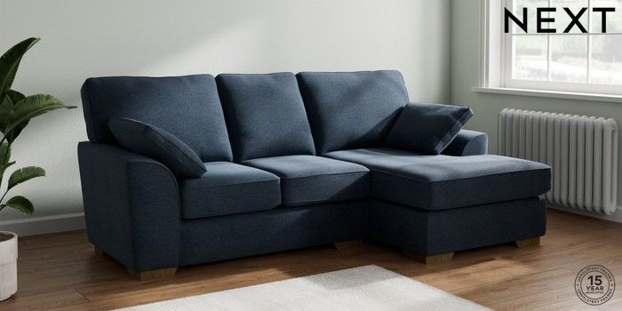 7.2.10 Stamford Small Sofa Chaise - Right Hand Ripple Chenille Dark Blue Large Square Angle - Mid | Made Click here to use our website with more accessibility support, for example screen readers