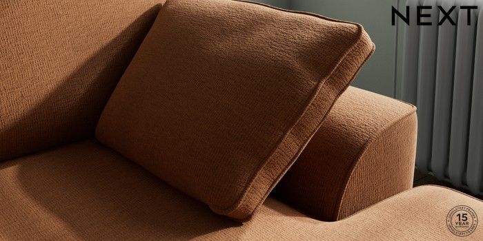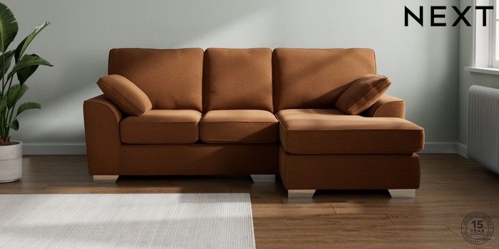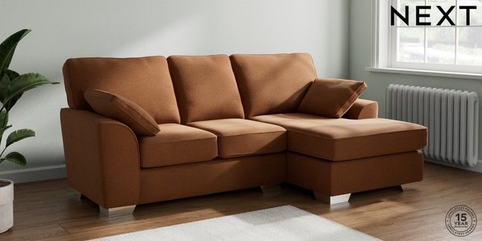 7.2.10 Stamford Small Sofa Chaise - Right Hand Ripple Chenille Mid Rust Brown Large Square Angle - Chrome Metal | Made Click here to use our website with more accessibility support, for example screen readers