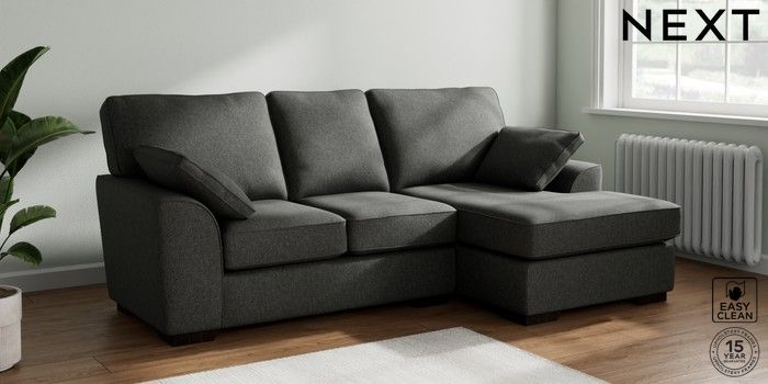 7.2.10 Stamford Small Sofa Chaise - Right Hand Tweedy Blend Easy Clean Charcoal Grey Large Square Angle - Dark | Made Click here to use our website with more accessibility support, for example screen readers