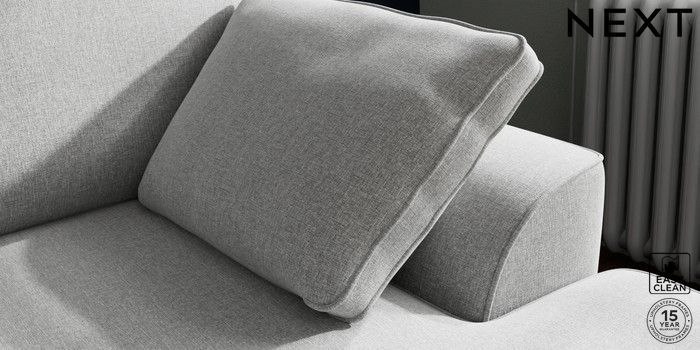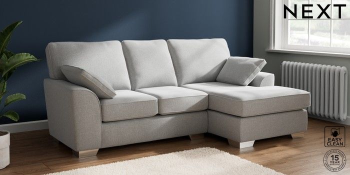 7.2.10 Stamford Small Sofa Chaise - Right Hand Tweedy Blend Easy Clean Light Silver Grey Large Square Angle - Chrome Metal | Made Click here to use our website with more accessibility support, for example screen readers