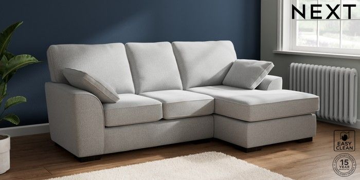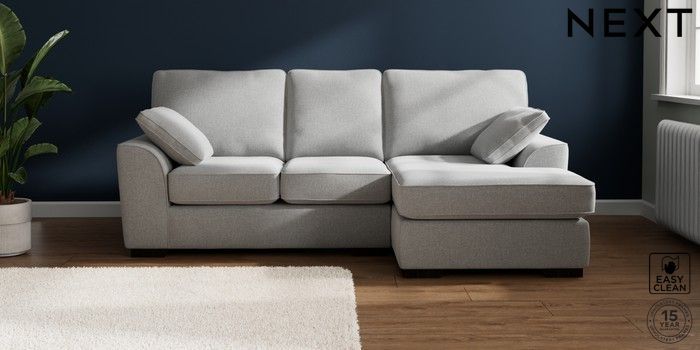 7.2.10 Stamford Small Sofa Chaise - Right Hand Tweedy Blend Easy Clean Light Silver Grey Large Square Angle - Dark | Made Click here to use our website with more accessibility support, for example screen readers