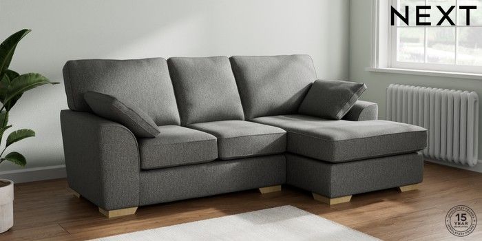 7.2.10 Stamford Small Sofa Chaise - Right Hand Tweedy Chenille Dark Grey Large Square Angle - Light | Made Click here to use our website with more accessibility support, for example screen readers
