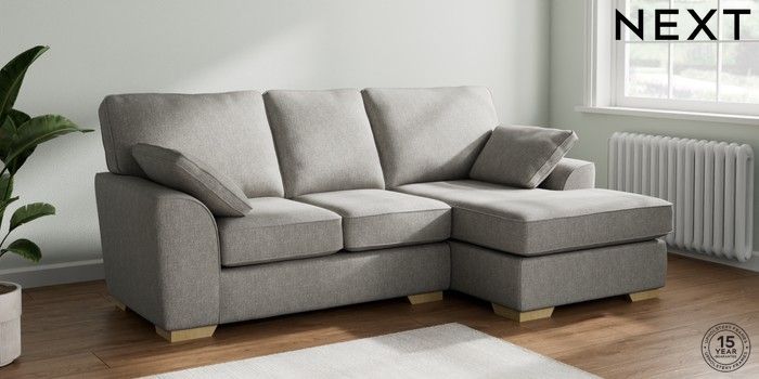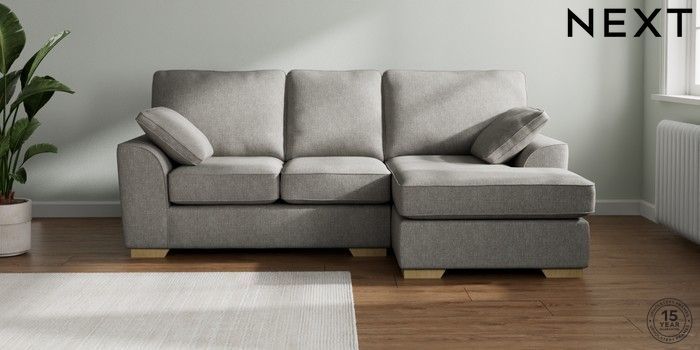 7.2.10 Stamford Small Sofa Chaise - Right Hand Tweedy Chenille Mid Grey Large Square Angle - Light | Made Click here to use our website with more accessibility support, for example screen readers