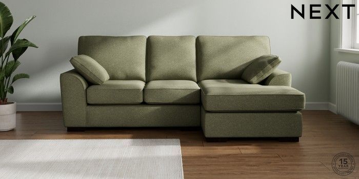 7.2.10 Stamford Small Sofa Chaise - Right Hand Tweedy Chenille Mid Moss Green Large Square Angle - Dark | Made Click here to use our website with more accessibility support, for example screen readers
