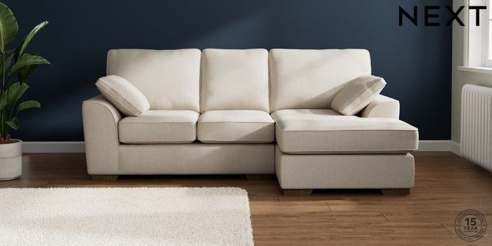 7.2.10 Stamford Small Sofa Chaise - Right Hand Tweedy Chenille Oyster Large Square Angle - Mid | Made Click here to use our website with more accessibility support, for example screen readers