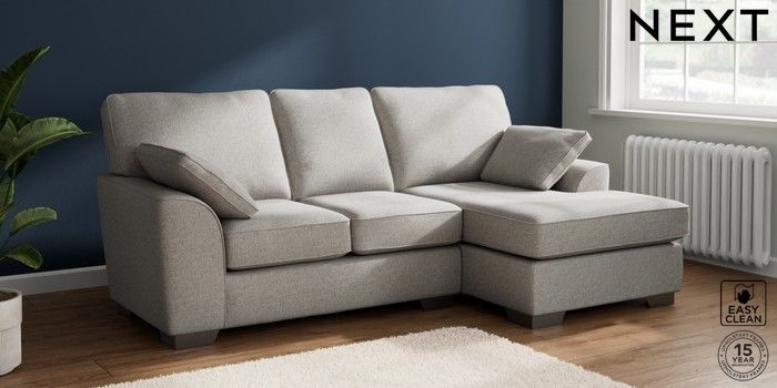 7.2.10 Stamford Small Sofa Chaise - Right Hand Woven Chenille Easy Clean Light Grey Large Square Angle - Gunmetal | Made Click here to use our website with more accessibility support, for example screen readers